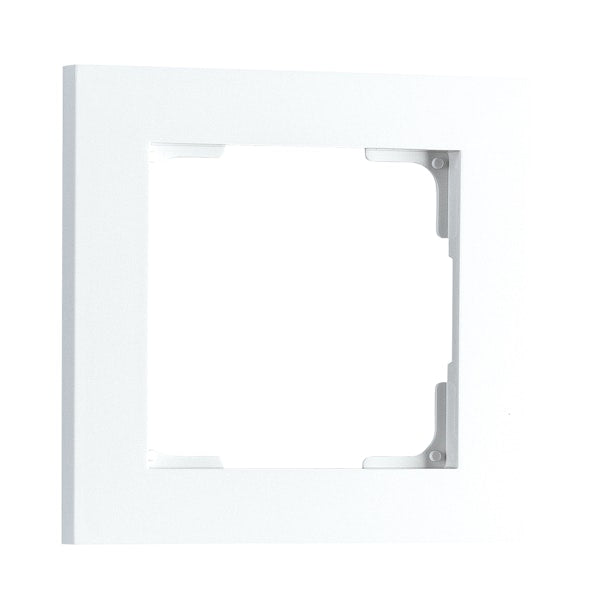 Ram 1-Fack Vit. 1-Facksram i halogenfri och färgbeständig polykarbonat för infälld installation eller i kombination med förhöjningsram. Fästram flyttas över från ramen som följer med Strömställaren/Uttaget.