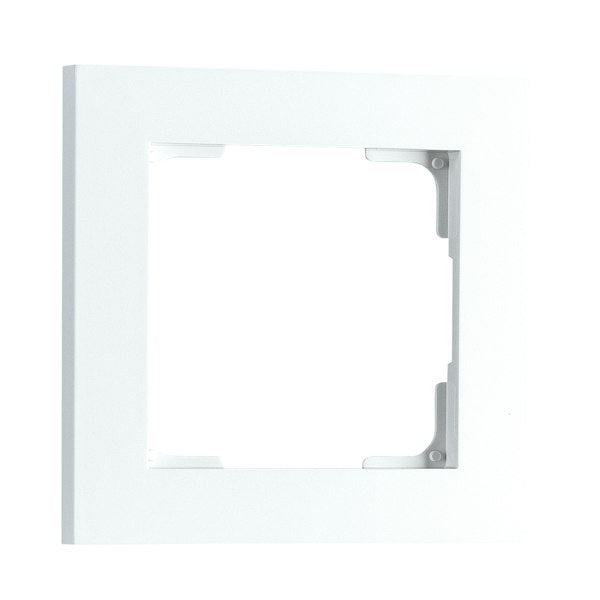 Ram 1-Fack Vit. 1-Facksram i halogenfri och färgbeständig polykarbonat för infälld installation eller i kombination med förhöjningsram. Fästram flyttas över från ramen som följer med Strömställaren/Uttaget.