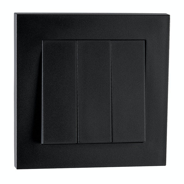 Strömställare 3x1-polig infälld Svart 16A 250V IP21. Infälld 3x1-polig strömställare med sockel, vippa och ram i halogenfri och färgbeständig polykarbonat. Används där man är i behov av induviduell styrning av tre zoner. Brytaren kan användas tillsammans med våra flerfacksramar eller förhöjningsramar för utanpåliggande montage. Kan förses med impulsfjäder 18 919 84 för tryckknappsfunktion. Färgmärkt snabbkoppling för snabb och enkel installationen.