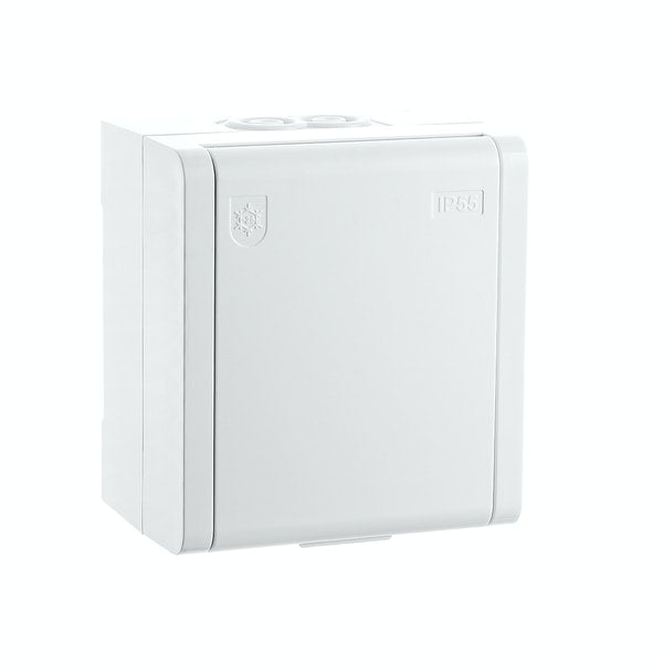 Utanpåliggande 1-vägs uttag IP44 för bruk både utomhus och inomhus, med integrerat petskydd och fällbart lock. Kabelgenomförningarna kan tas ut och ersättas av en dragavlastare (tillbehör). Tillverkad av halogenfritt polykarbonat som ger ökad färgbeständig färg. Den revolutionerande kopplingstekniken med öppningsbara snabbklämmor gör att det går snabbt och effektivt att montera.