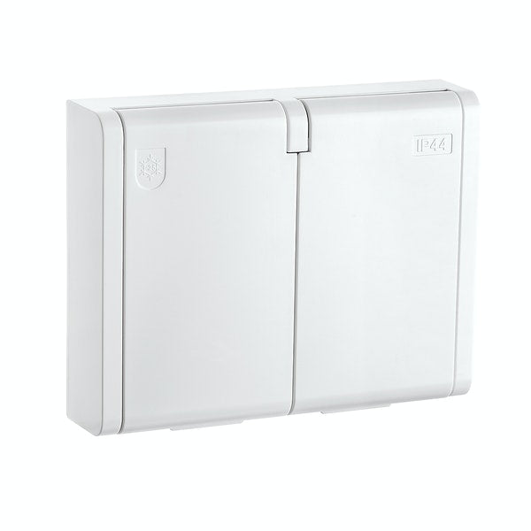 2-vägs uttag IP44 med integrerat petskydd och fällbart lock med automatisk låsning. Tillverkad av halogenfritt polykarbonat som ger ökad färgbeständig färg. Den revolutionerande kopplingstekniken med öppningsbara snabbklämmor gör att det går snabbt och effektivt att montera.